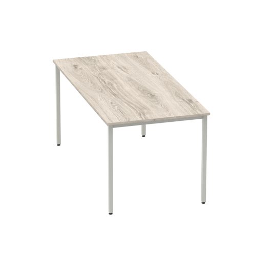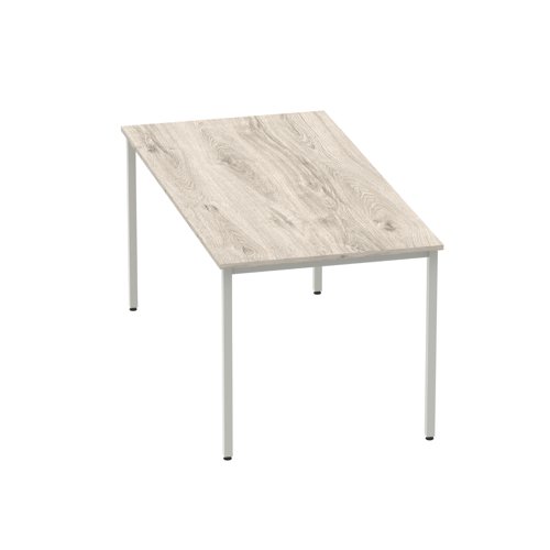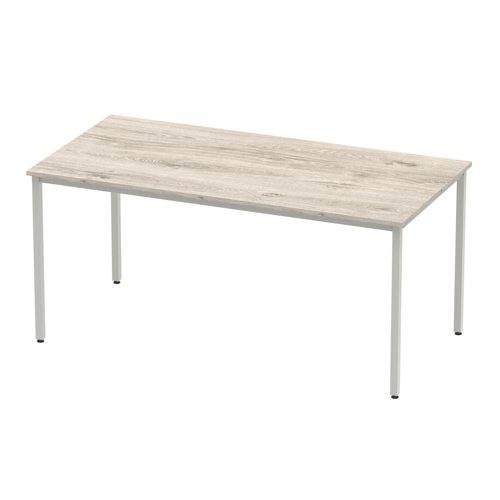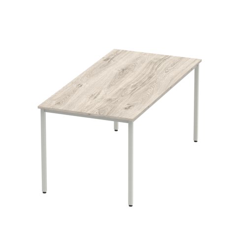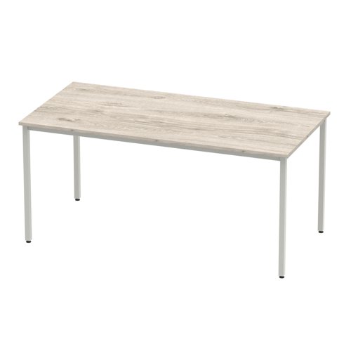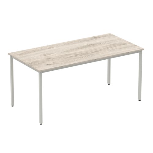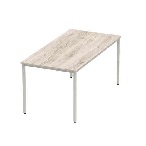 Impulse 1600mm Straight Table Grey Oak Top Silver Box Frame Leg